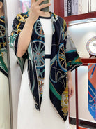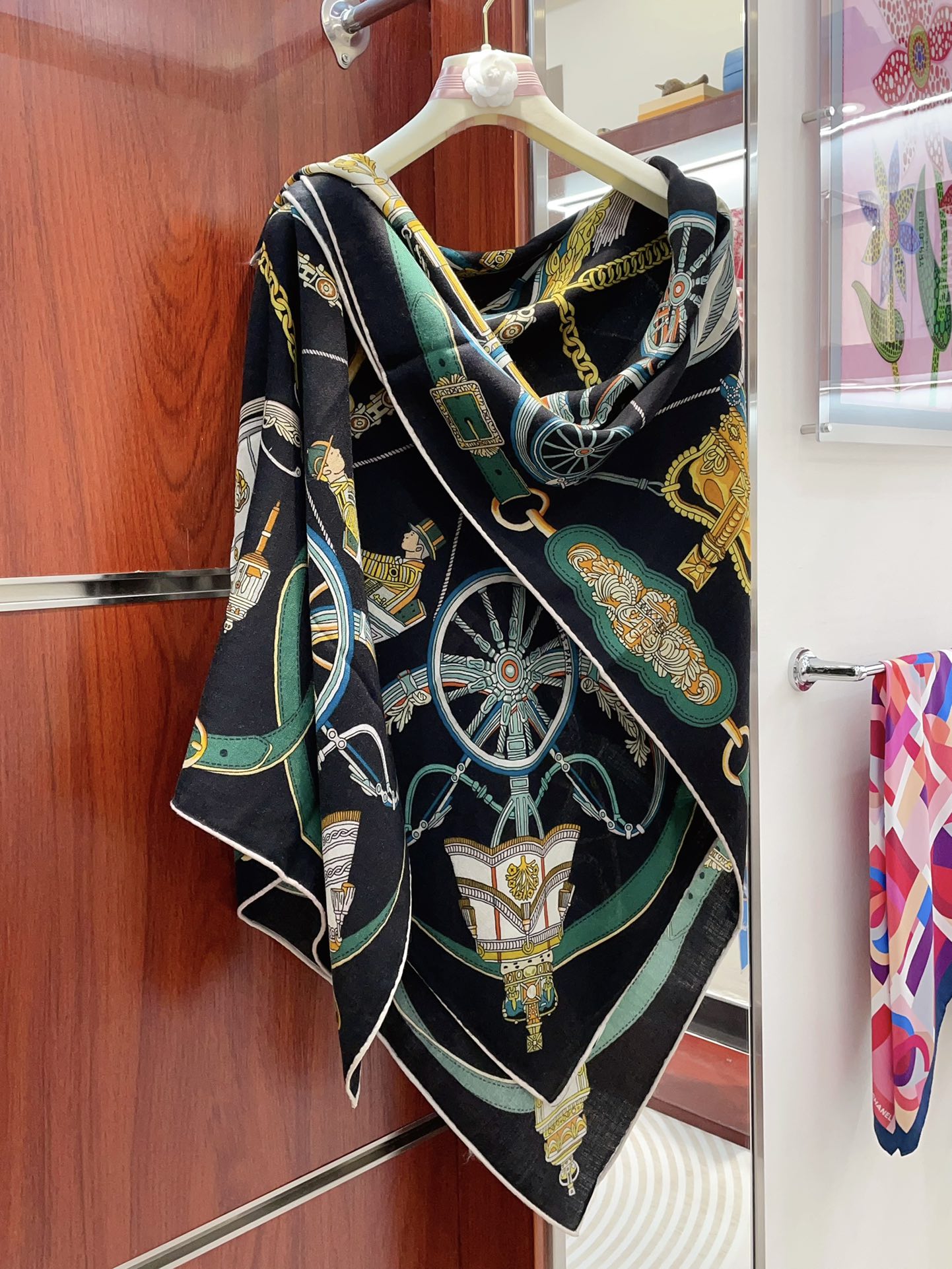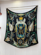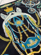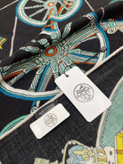 Stately Wheels Scarf 140 CM Black Colorful Cashmere And Silk 394589
