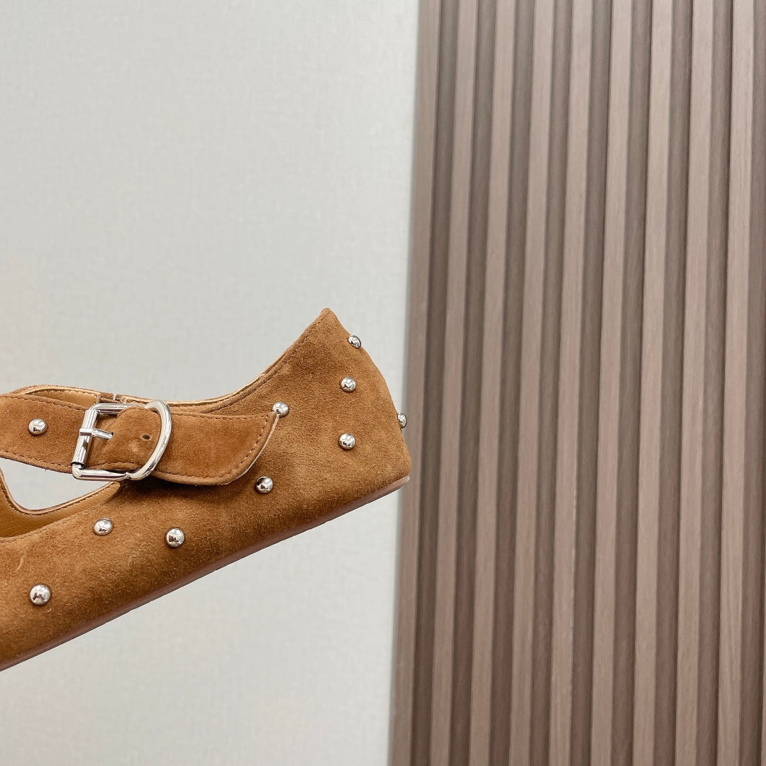 Alaia 2025 Criss Cross With Stud Ballet Flats Brown Beige Suede 293207