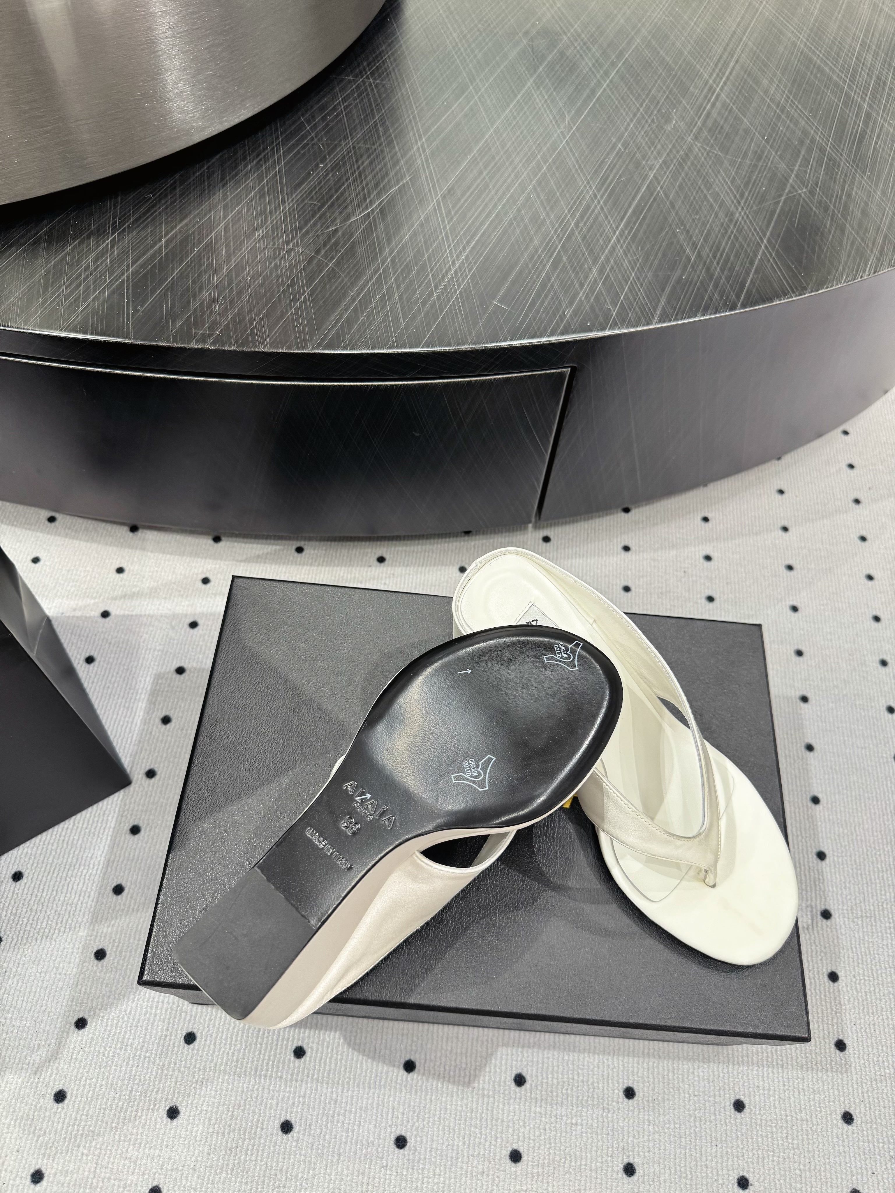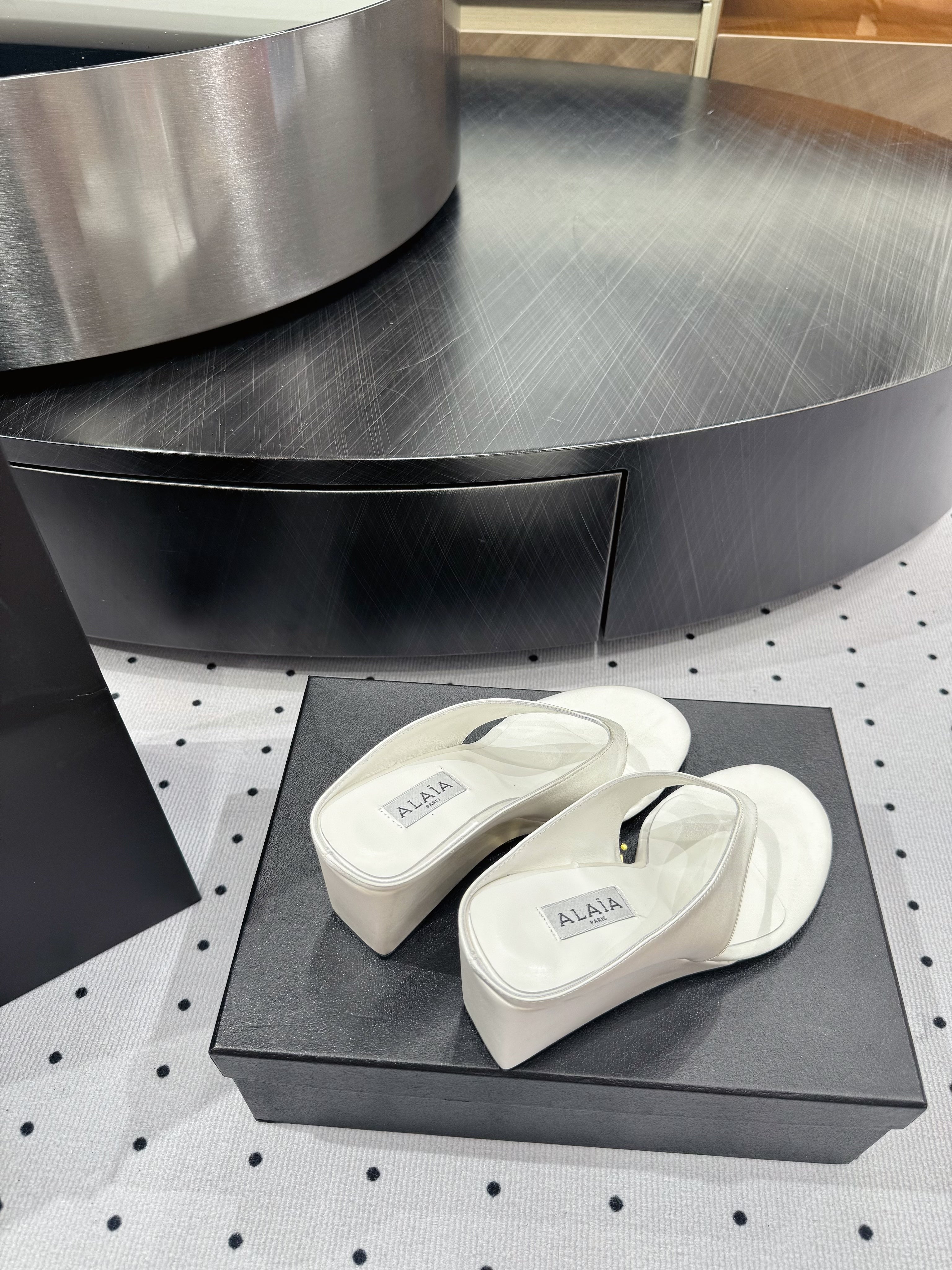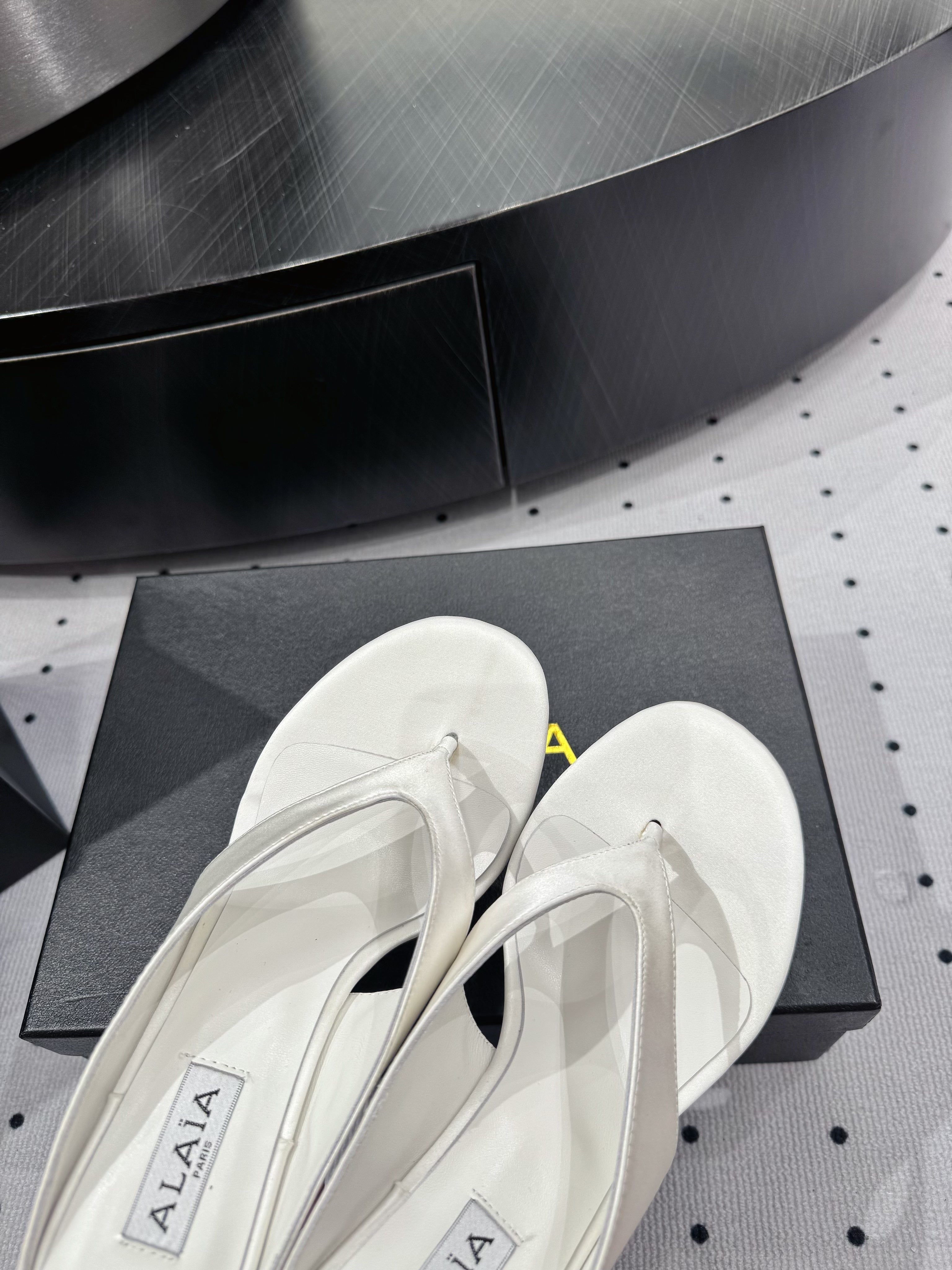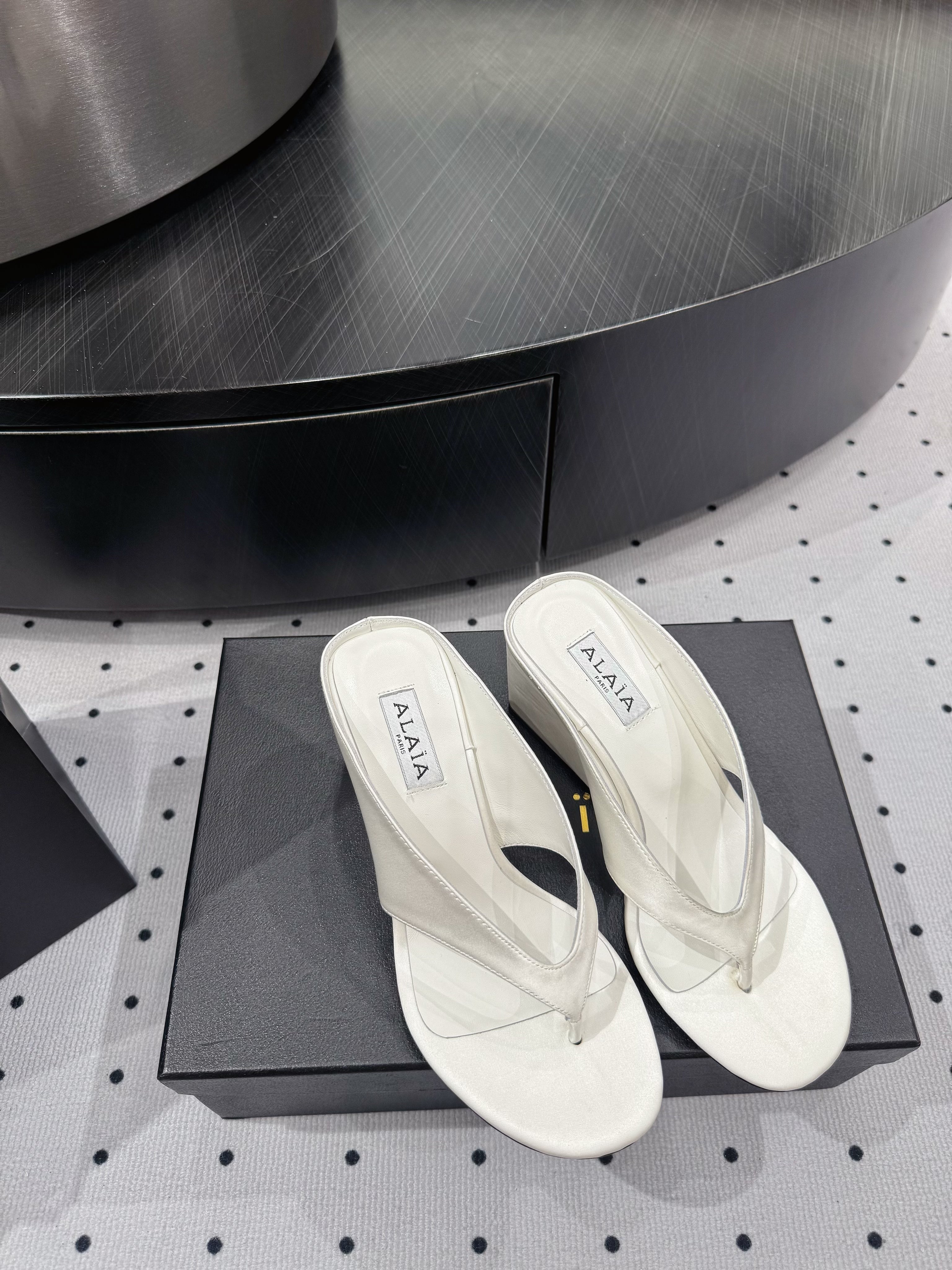Alaia 25 Cube Thong Mules White Sheepskin 296089