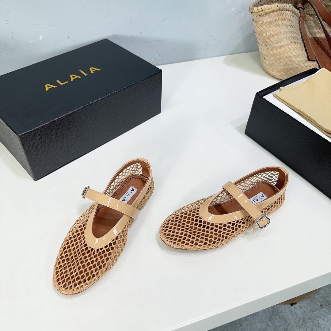 Alaia 25 Laminated Fishnet Ballet Flats Fawn Lambskin 621833