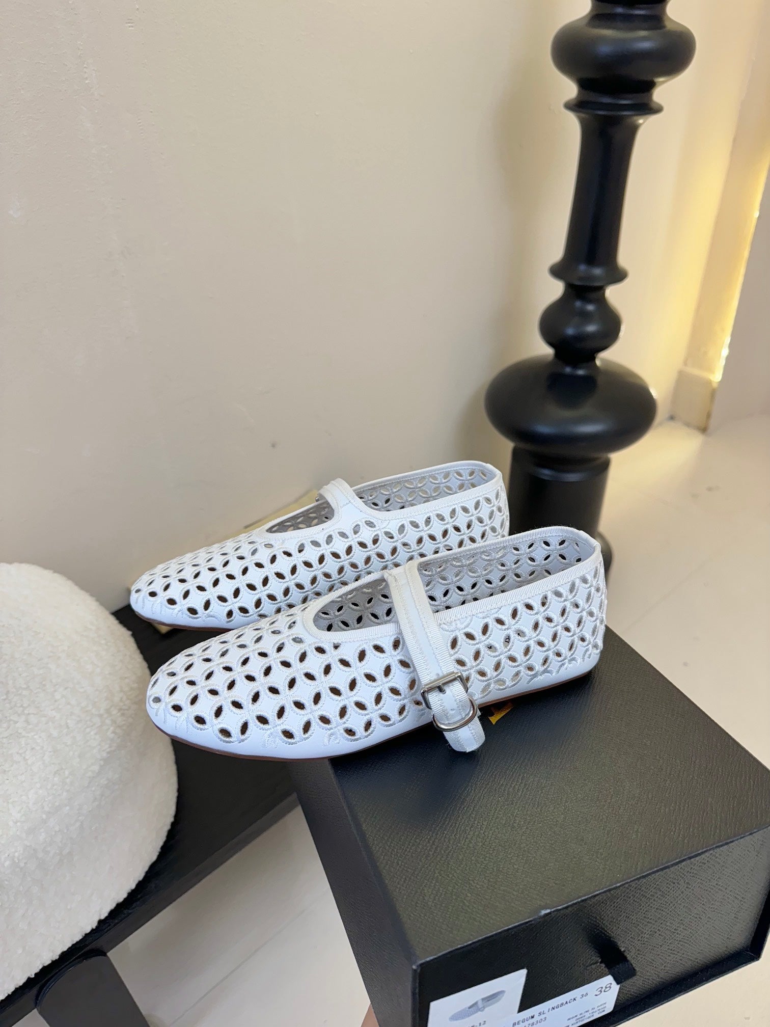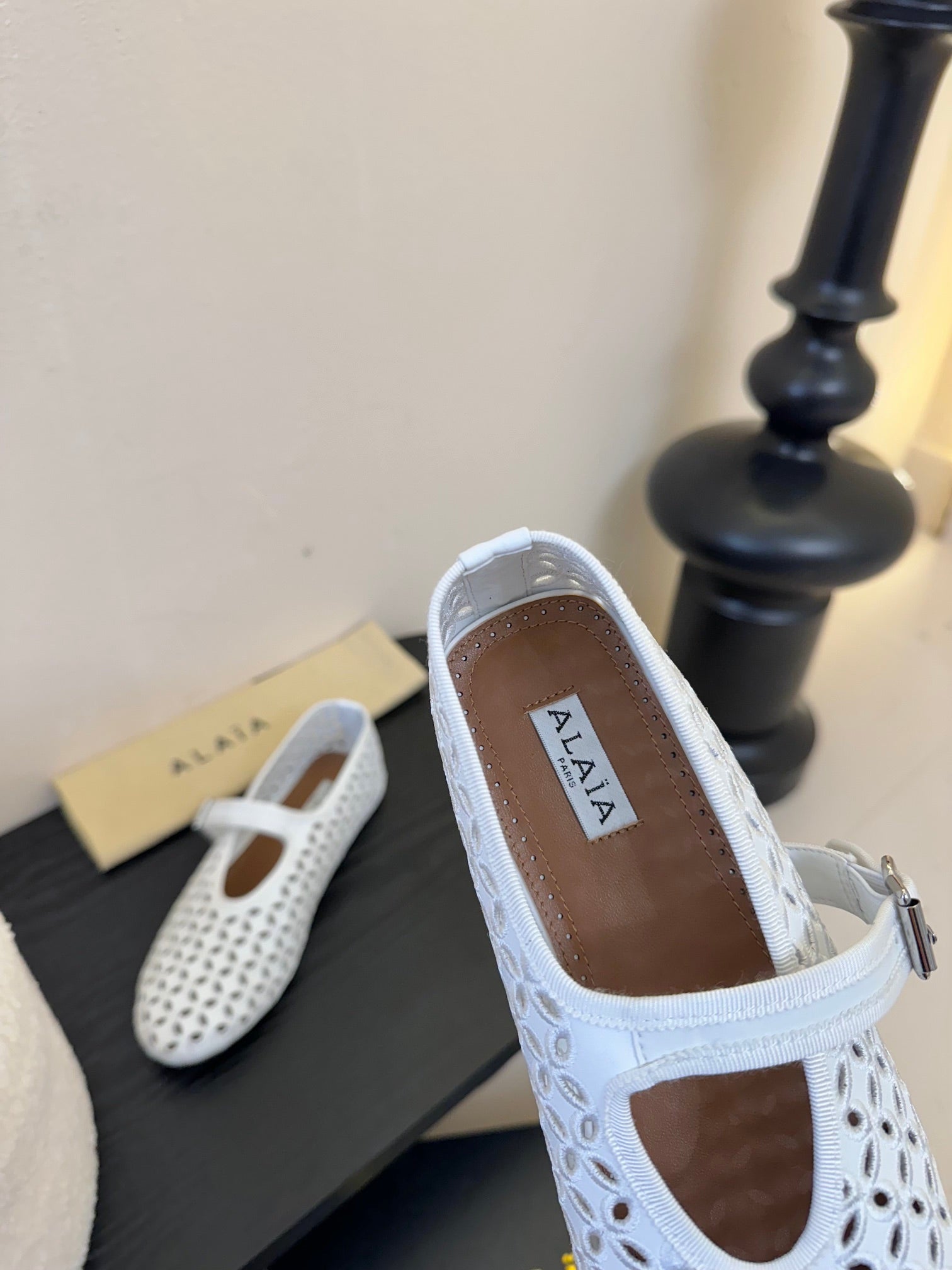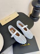 Alaia 25 Mary Jane Mesh Ballet Flats White Calfskin 297033