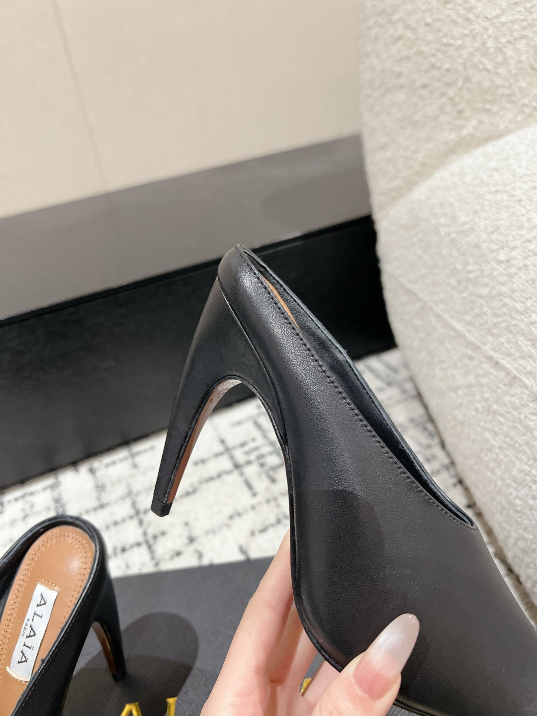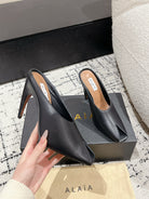 Alaia 25 Spike High Heel Mules Black Lampskin 293181