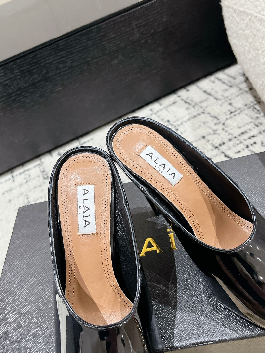 Alaia 25 Spike High Heel Mules Glossy Black Lampskin 293184
