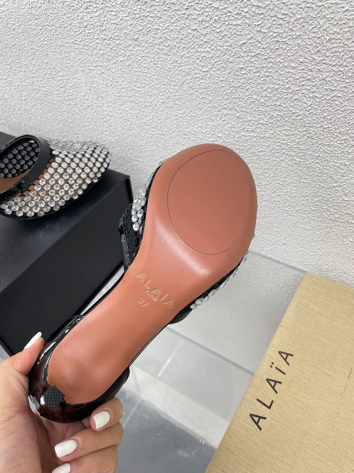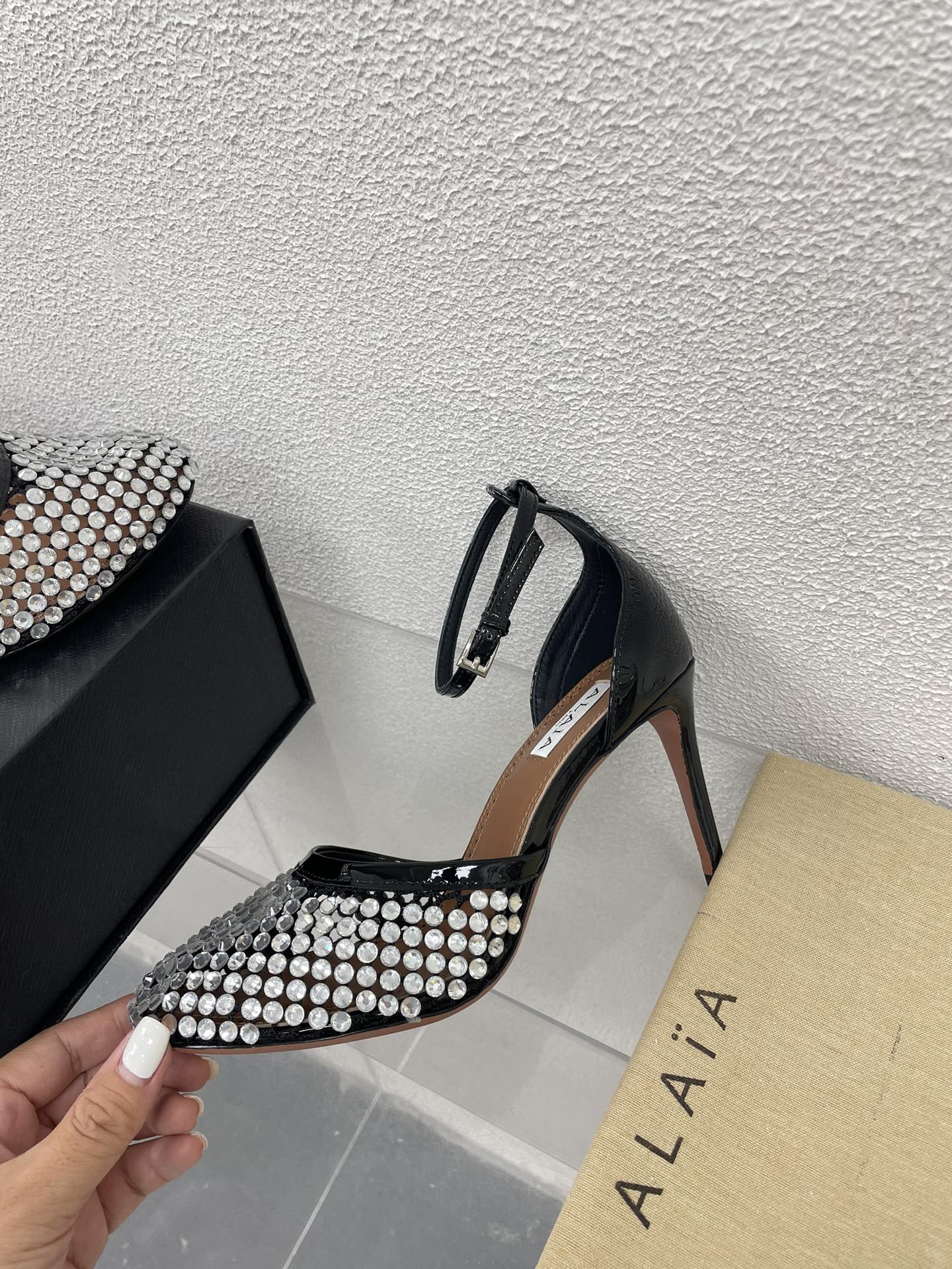 ALAIA HIGH FISHNET PUMPS IN BLACK MESH WITH WHITE RHINSTONES