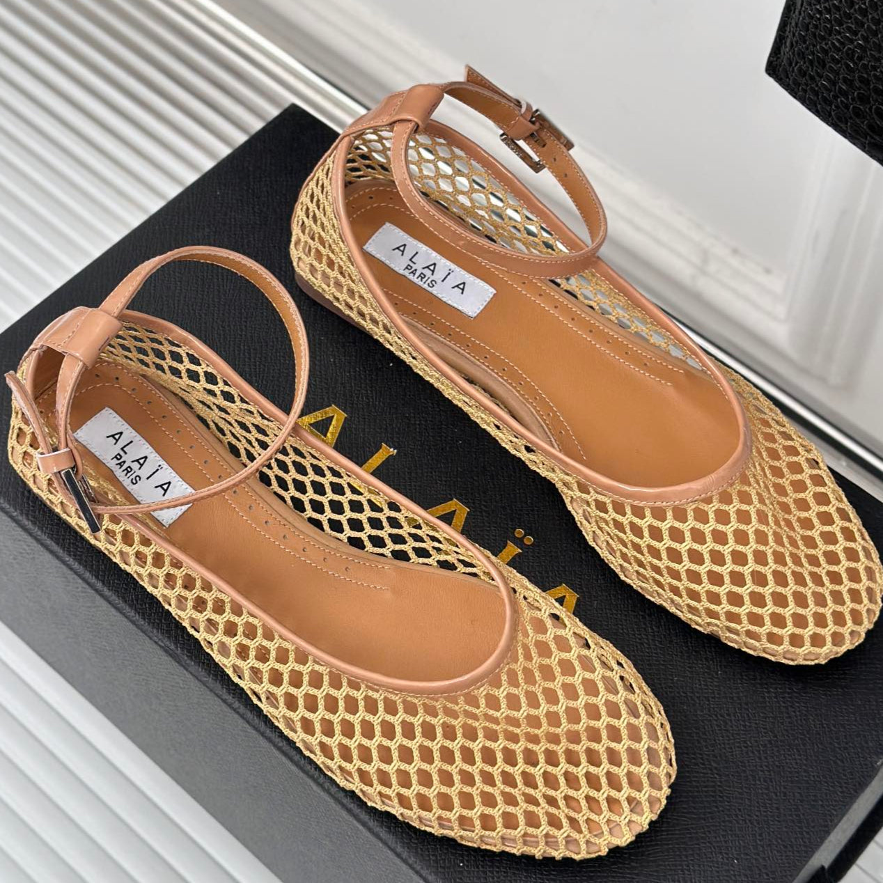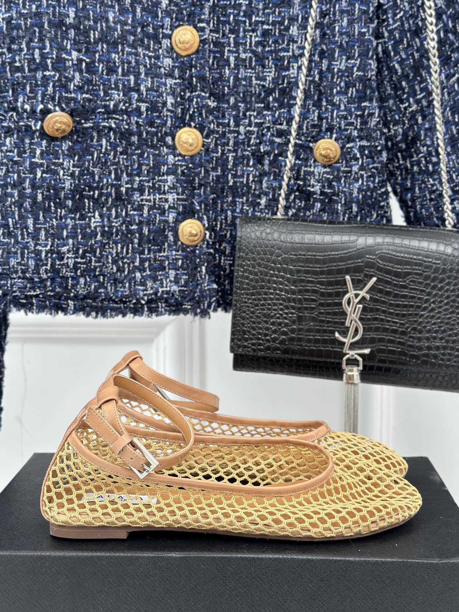 Alaia Mary Jane Ballet Flat Yellow Lambskin 293235