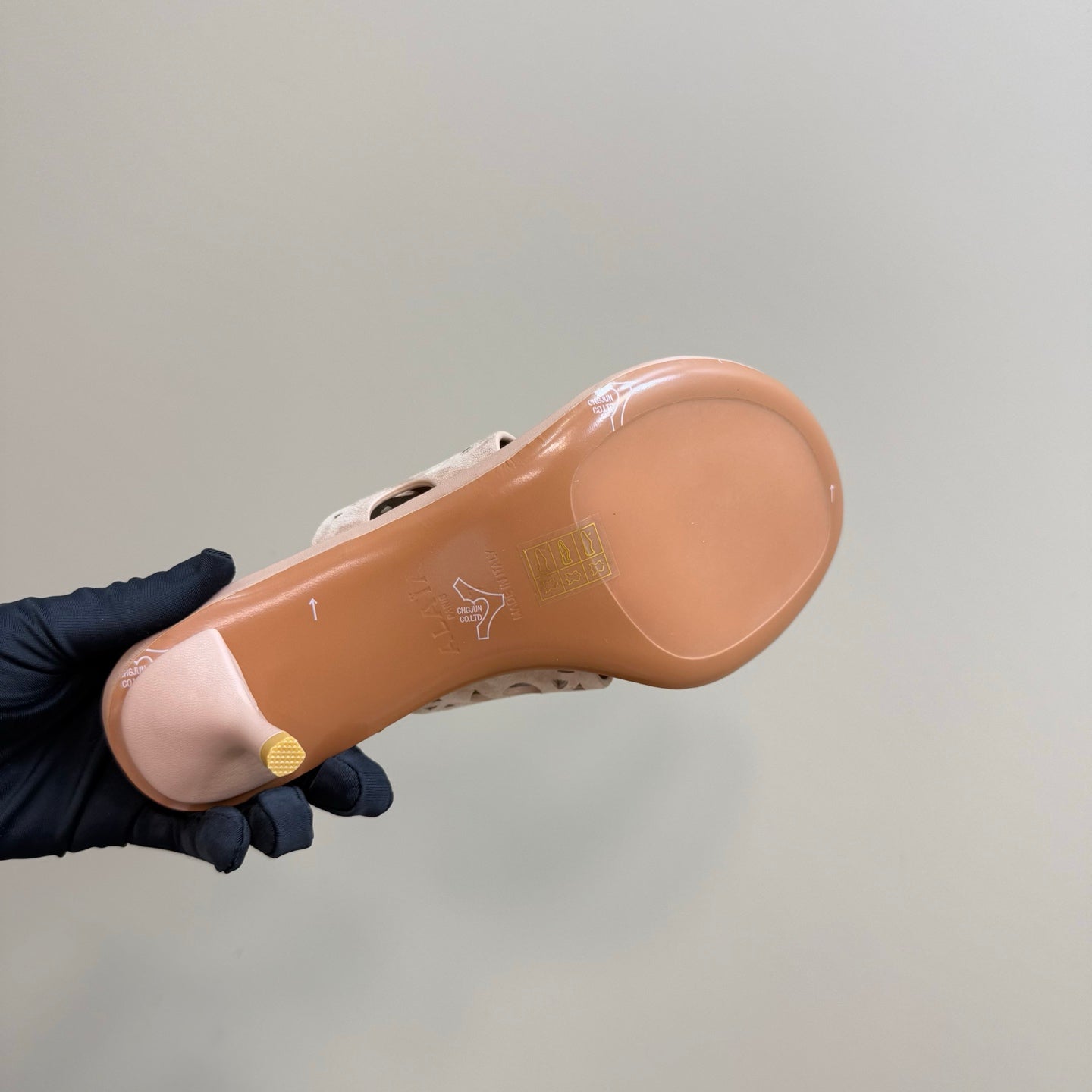 Alaia Vienne Cutout Kitten-Heel Slide Sandals Pink Sheepskin 299665