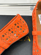 Alaia Women's Ballet Flat Orange Suede 293228