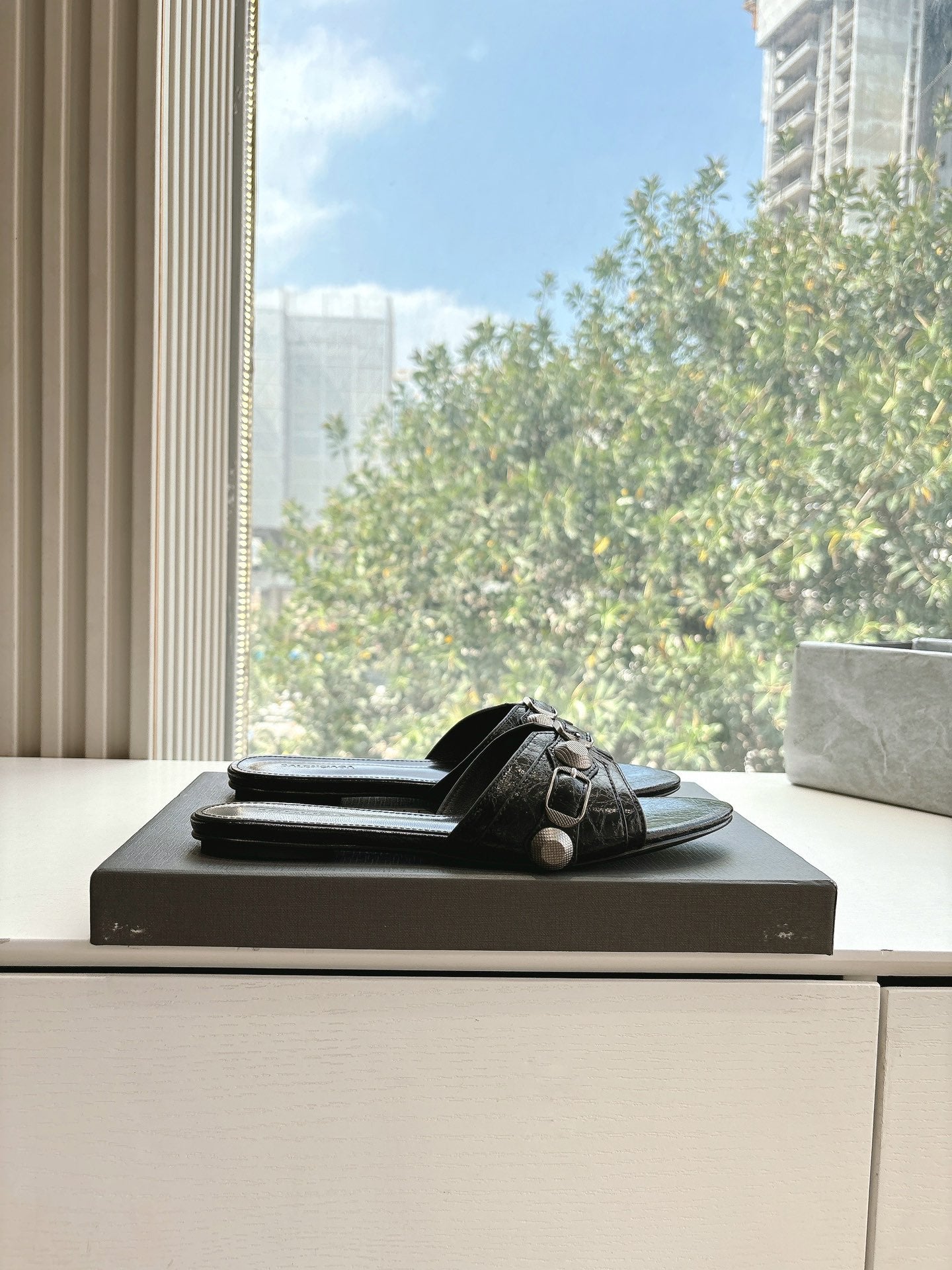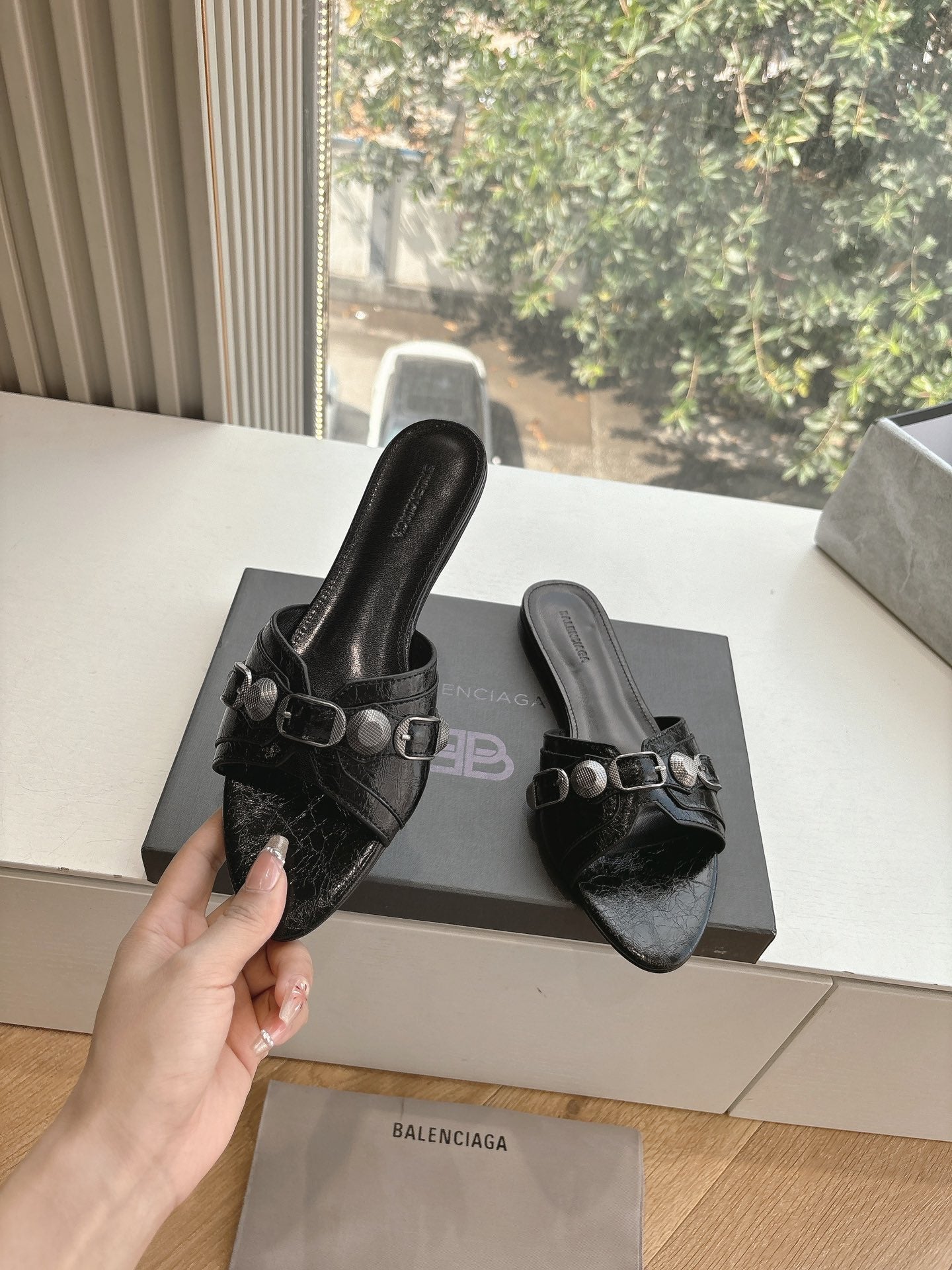 CAGOLE FLAT MULES IN BLACK CALFSKIN