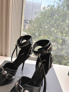 CAGOLE HIGH-HEEL SANDALS IN BLACK LAMBSKIN