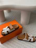 chypre sandal white canvas brown calfskin