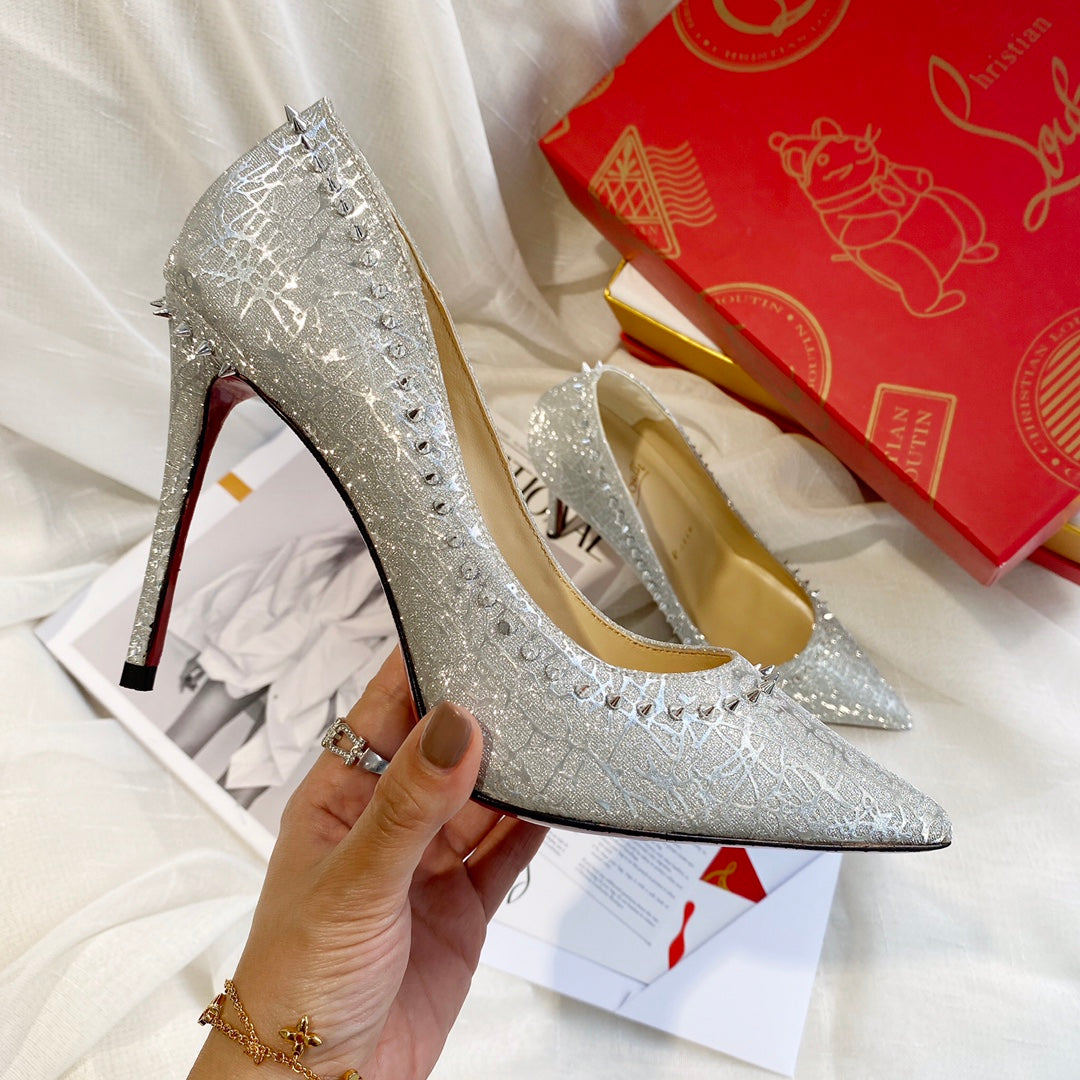 CL Anjalina Spike Pump 85mm Glitter Silver