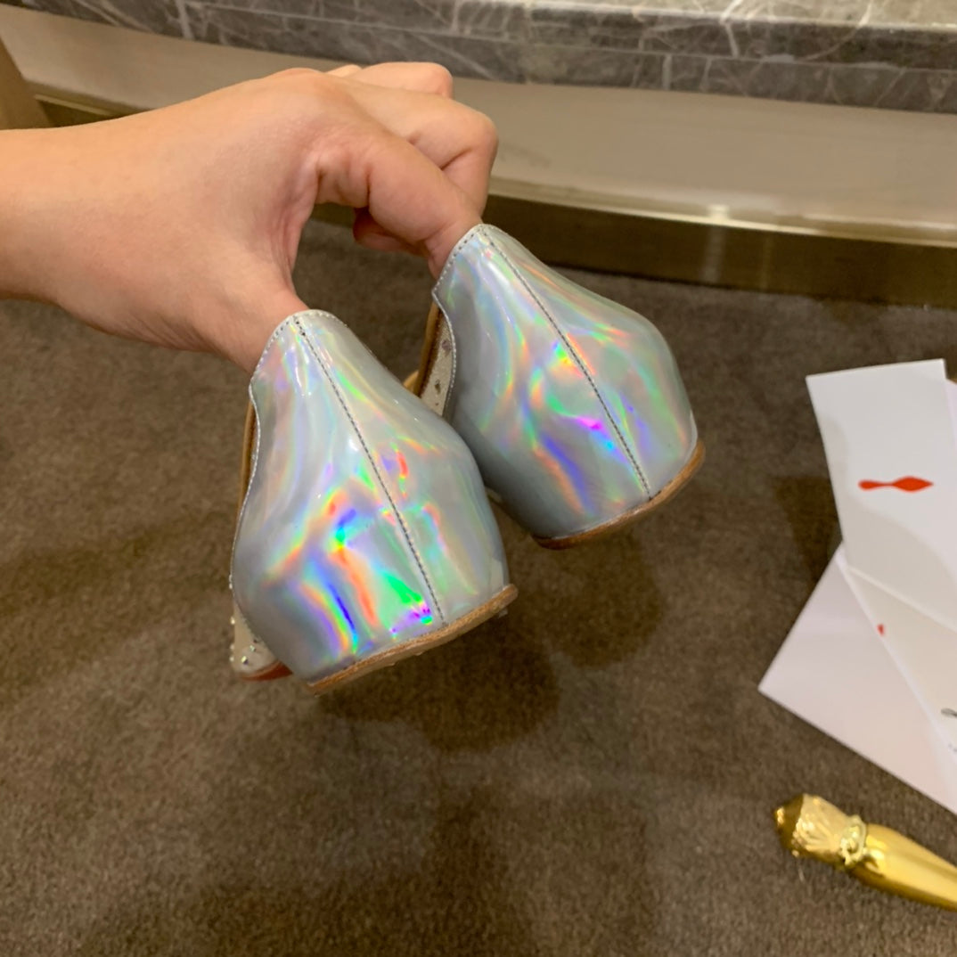 CL Follies Strass Flats Mesh and Patent Leather Silver