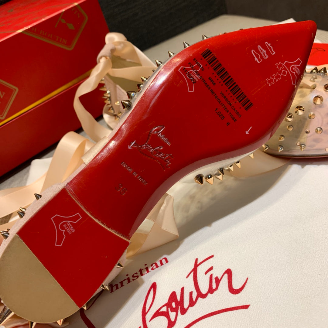 CL Mechante Reine Flats Spike PVC and Veau Velours Pink
