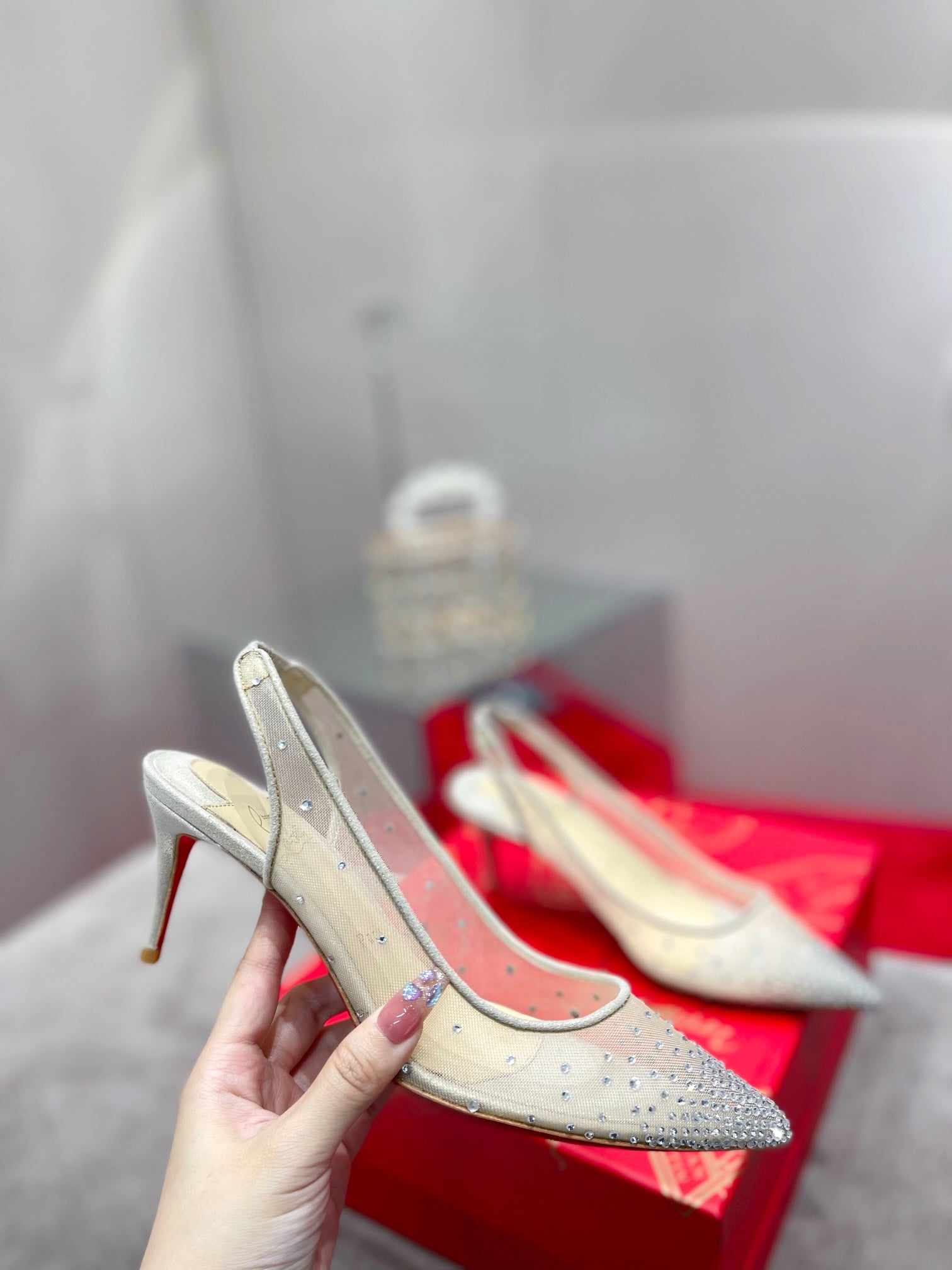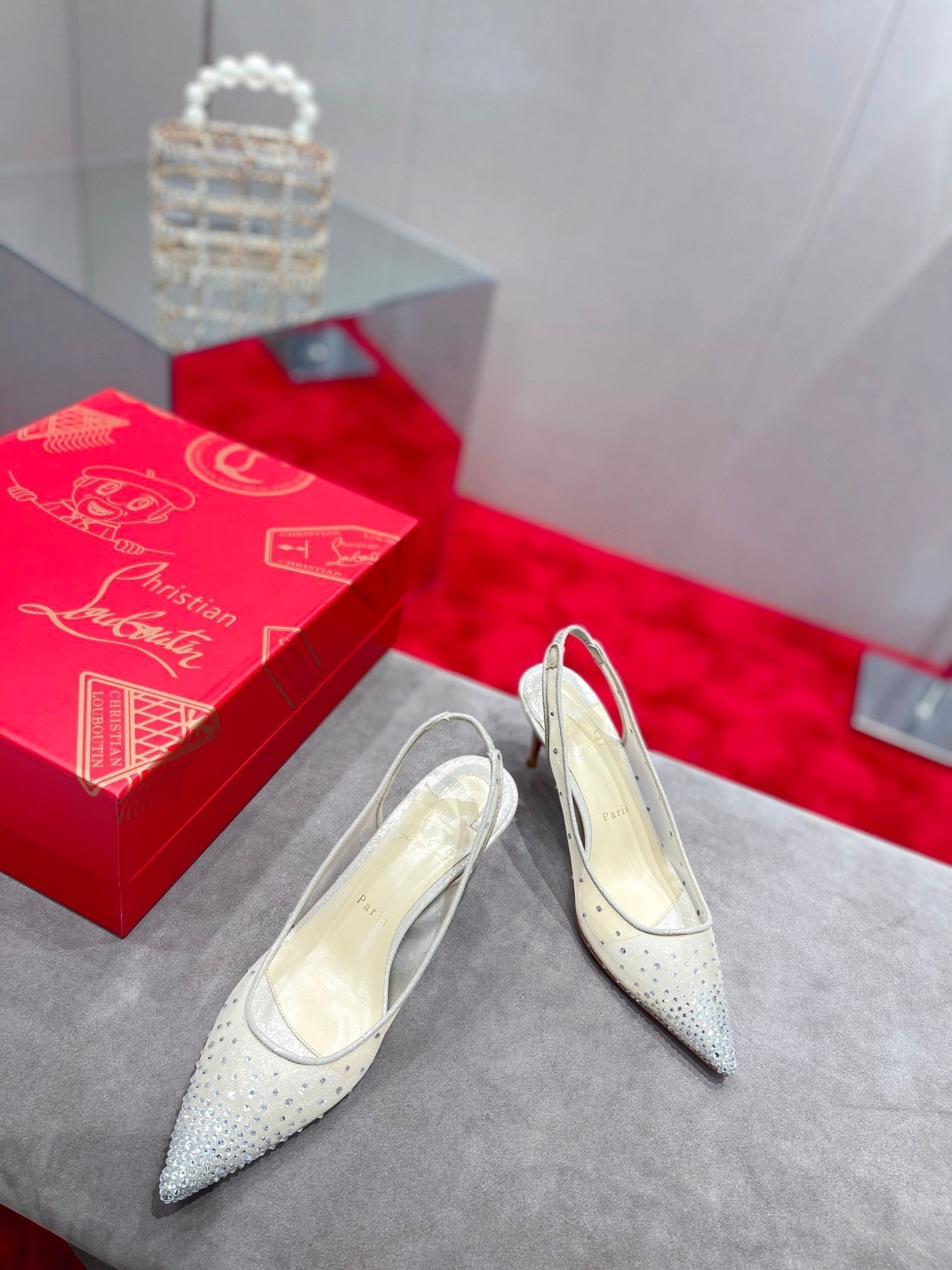 CL Pumps Follies Strass 70mm Fishnet White