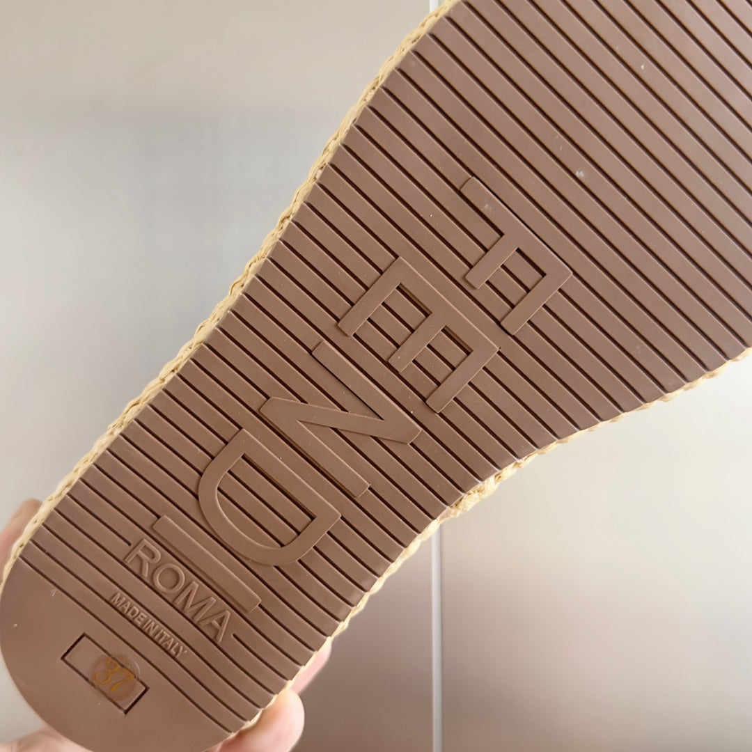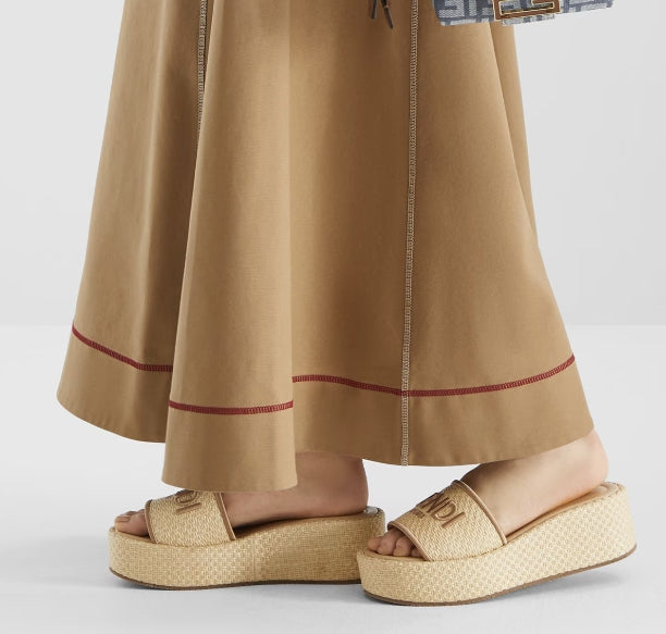 FENDI FFOLD MEDIUM-HEEL SANDALS 45 MM IN TUSCAN BEIGE COTTON FIBRE