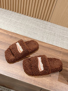 FURRY SLIDES IN BROWN CURLY SHEARLING
