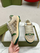 GG Sneaker Beige Suede Green Calfskin Crystal-Embellished