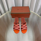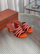 High Hee 60 Sprightly Charms Mule Sandal Orange Pink Maroon Calfskin