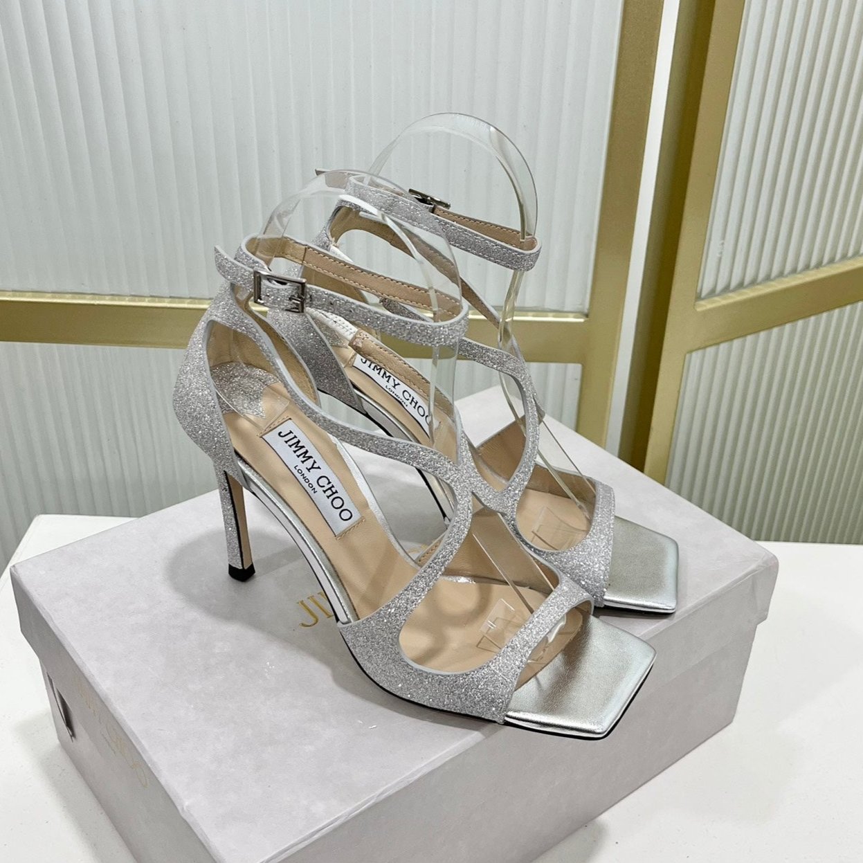 Jimmy Azia 95 In Silver Cowhide With Glitt Sandals 587711