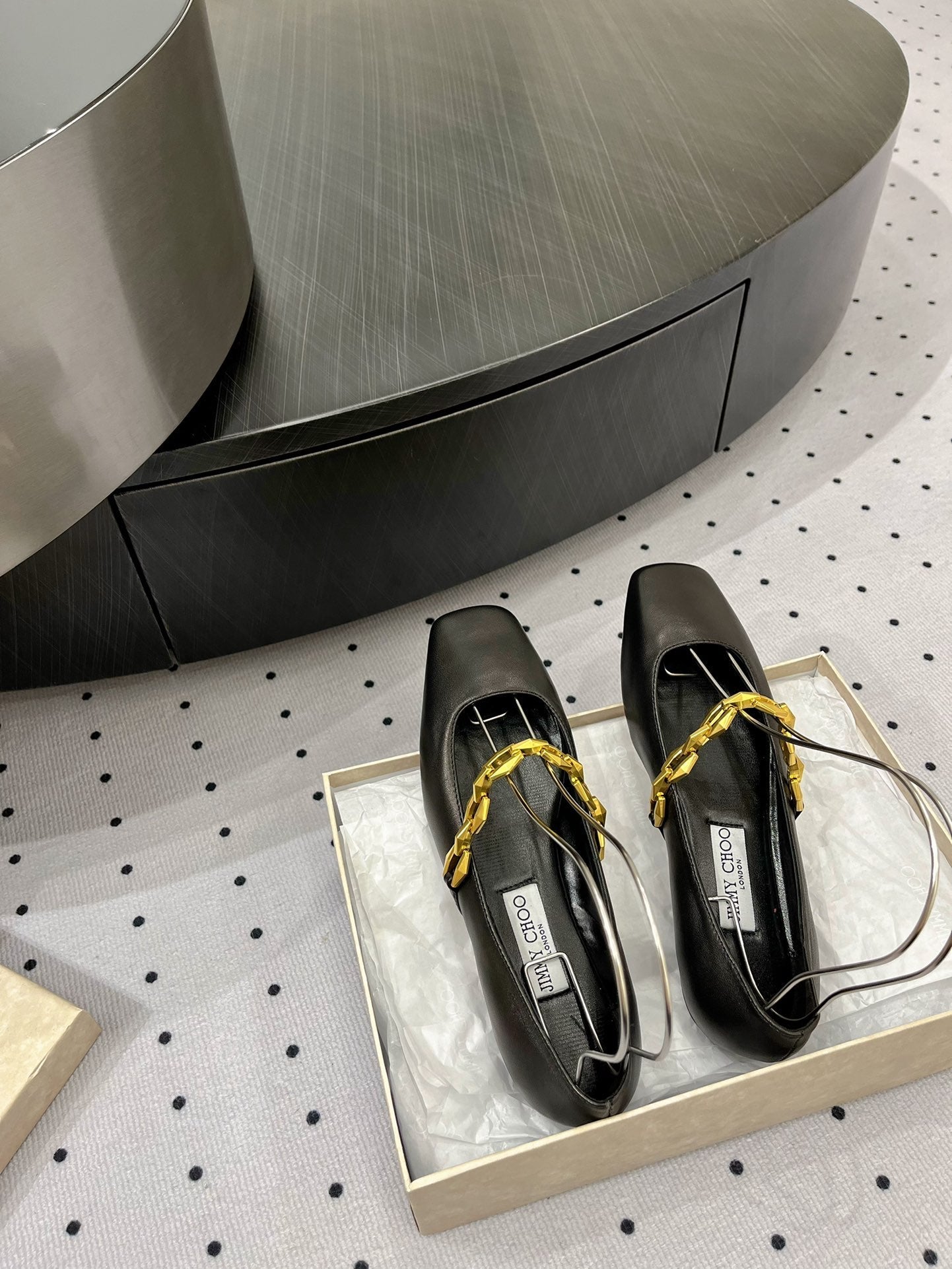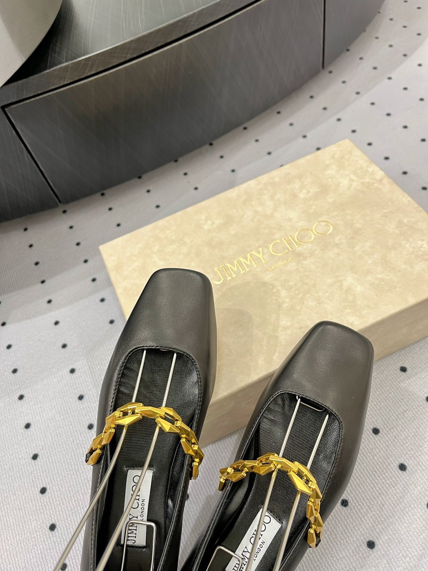 Jimmy Diamond Tilda Flat 10mm In Black Nappa Leather Flats With Chain 591607