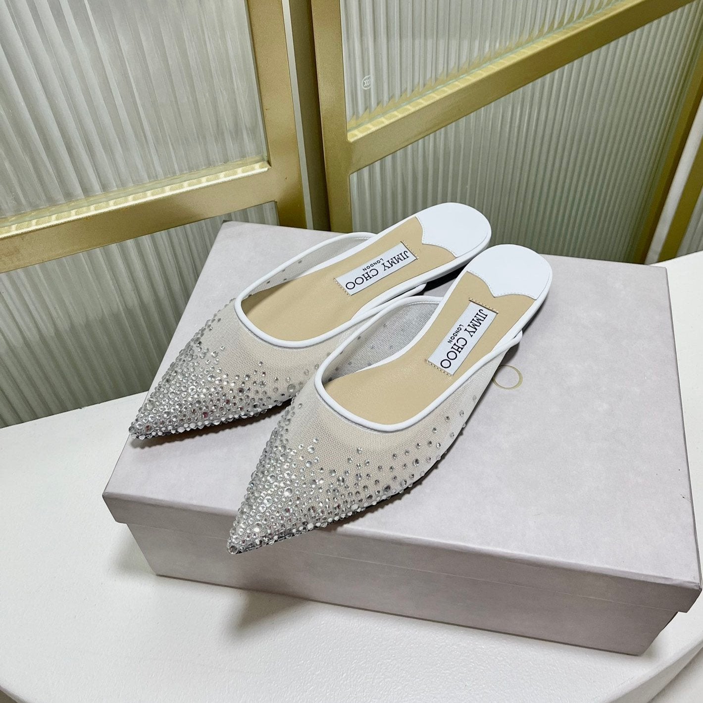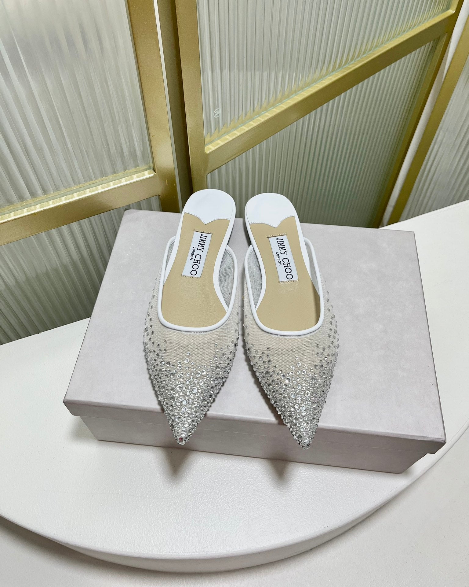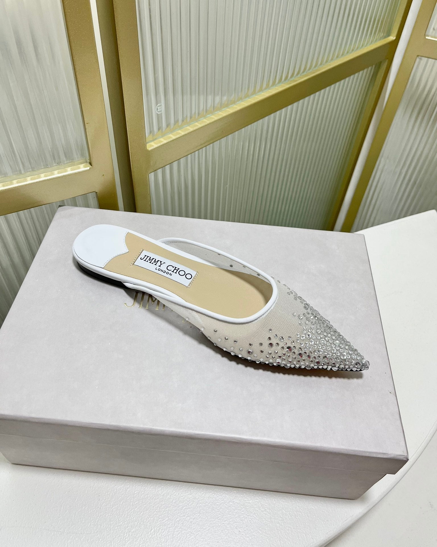 Jimmy Mule In White Mesh Fabric With Swarovski Crystal 597884