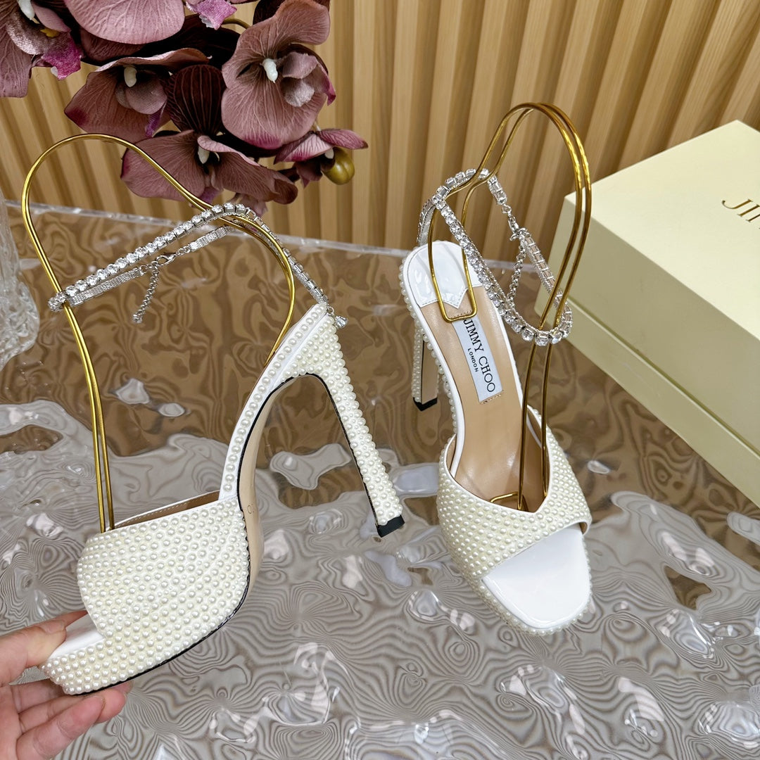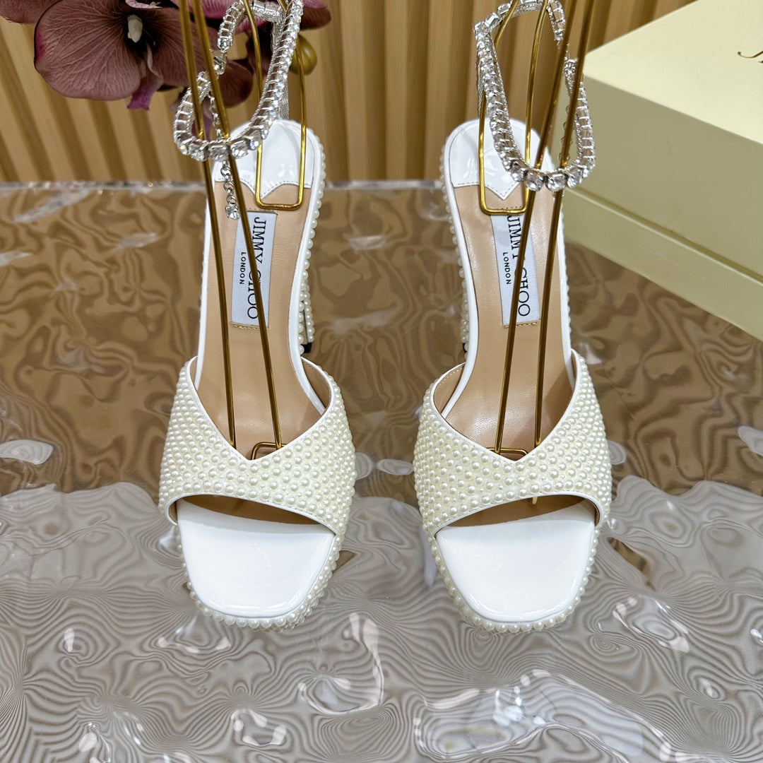 Jimmy Sandal 130mm In White Pearl Studded Lambskin 581557