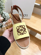 Loew Anagram Yellow Brown Leather And Canvas Espadrille Sandals
