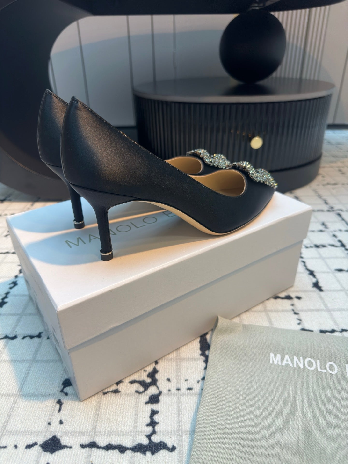 Manolo Blahnik Hangisi Embellished Pumps Black Satin Leather