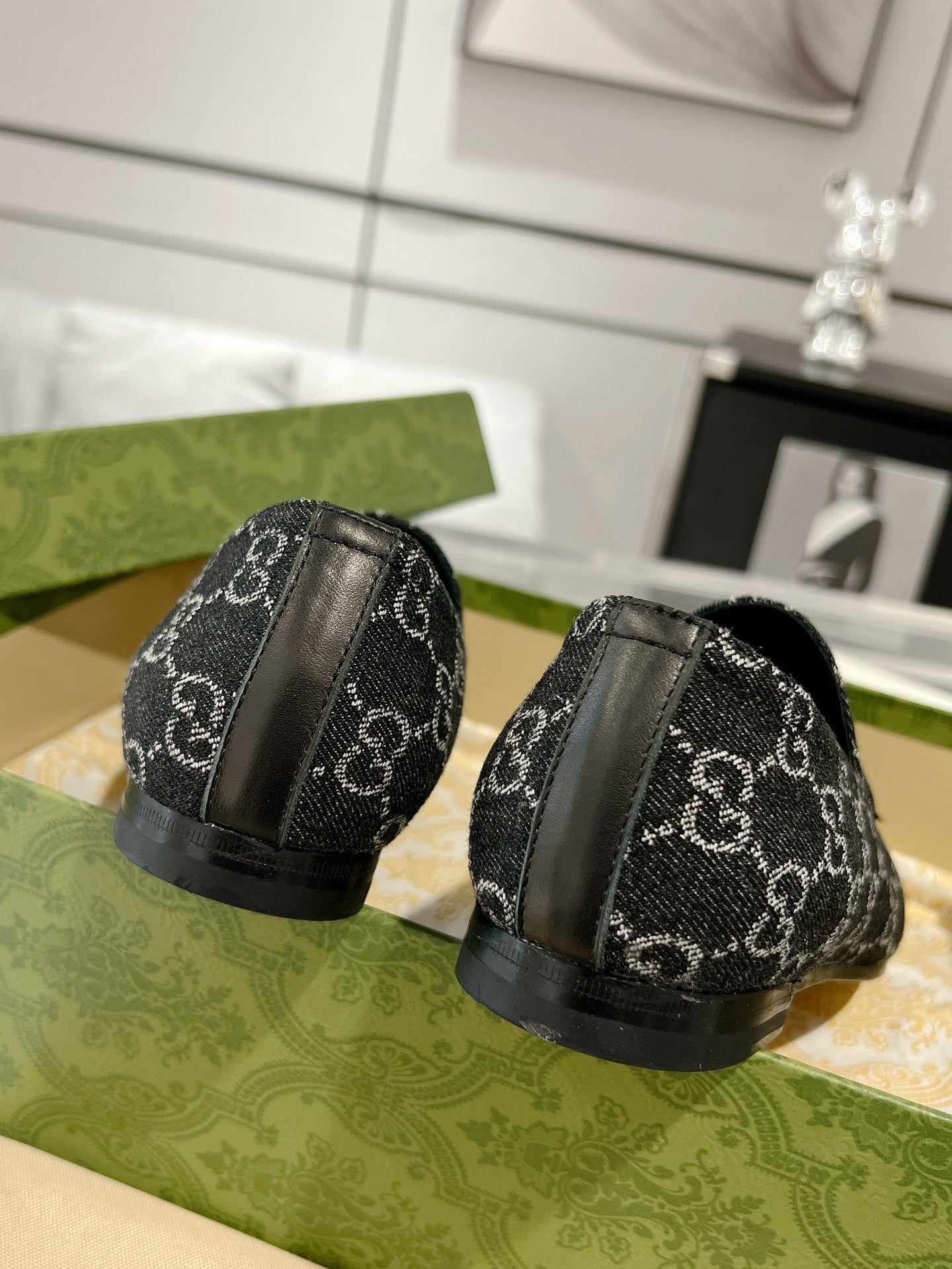MEN'S LOAFER WITH HORSEBIT IN BLACK MONOGRAM JACQUARD FABRIC