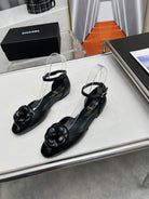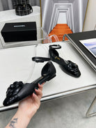 mule sandal flower wedge heel black calfskin