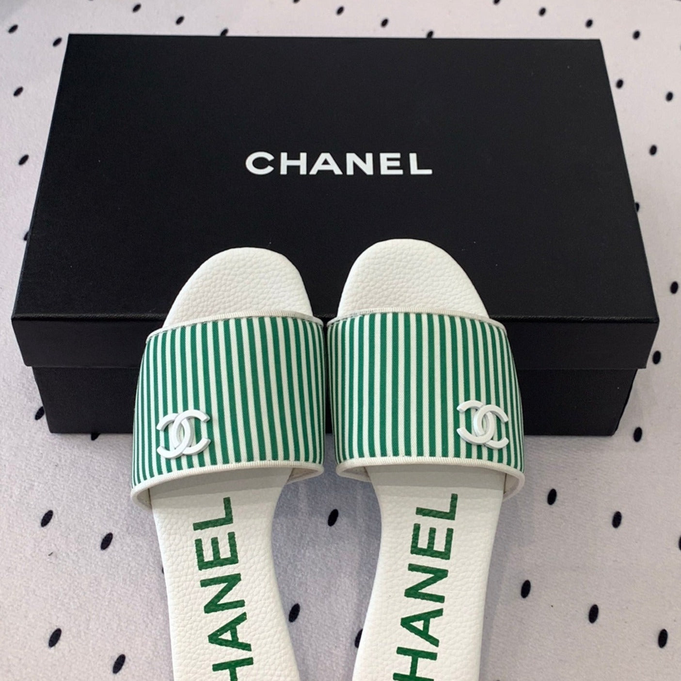 mule sandal striped green white