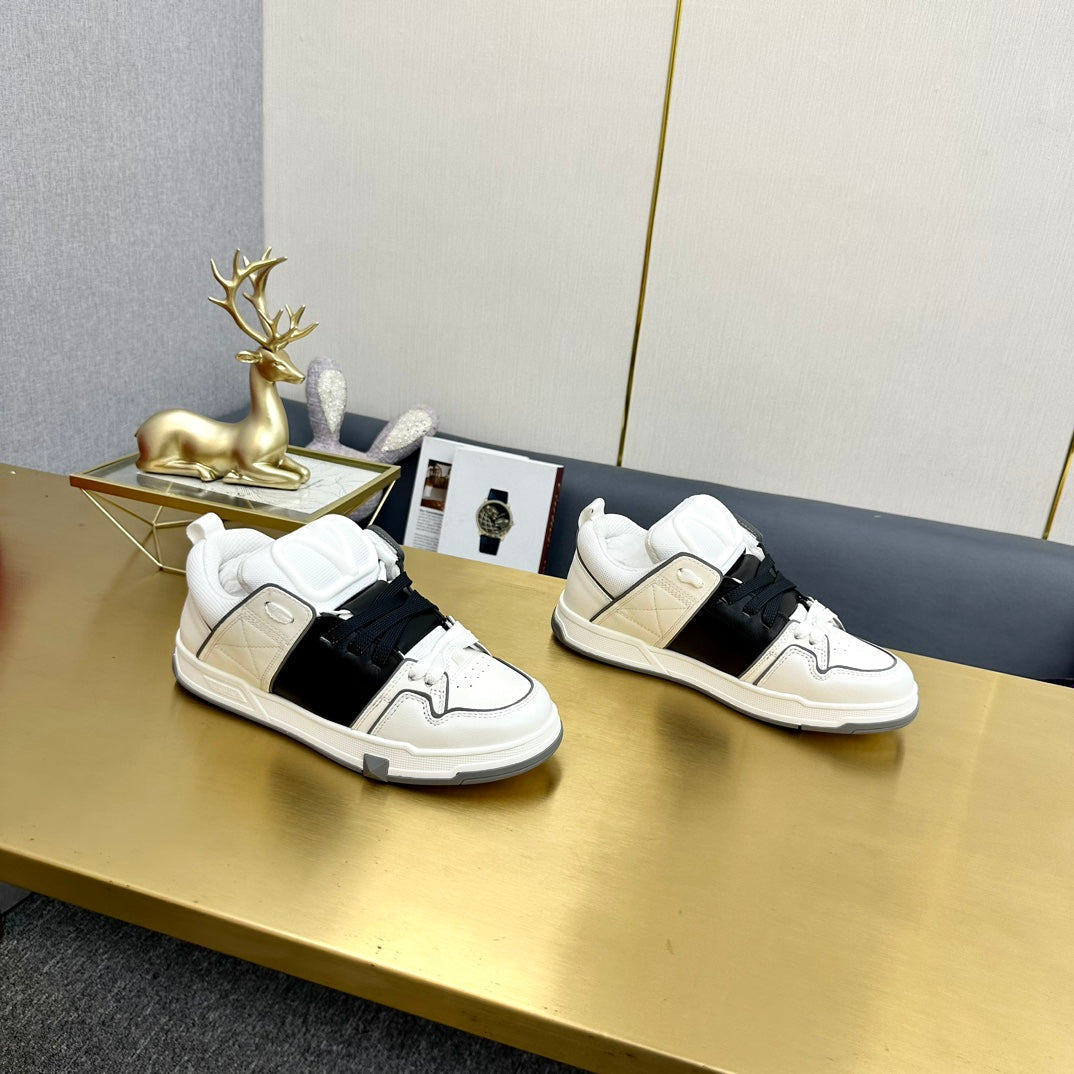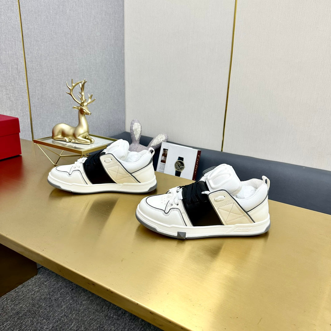 One Stud Sneaker Garavani Calfskin Fabric Black White