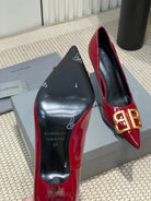 POINTED BB GOLD BUCKLE HIGH PUMPS 80MM IN RED PATENT CALFSKIN