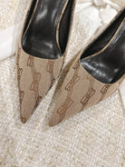 POINTED HIGH MULES IN BEIGE MONOGRAM JACQUARD FABRIC
