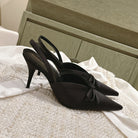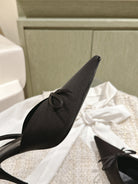 POINTED HIGH SLINGBLACK WITH BOW IN BLACK SILK