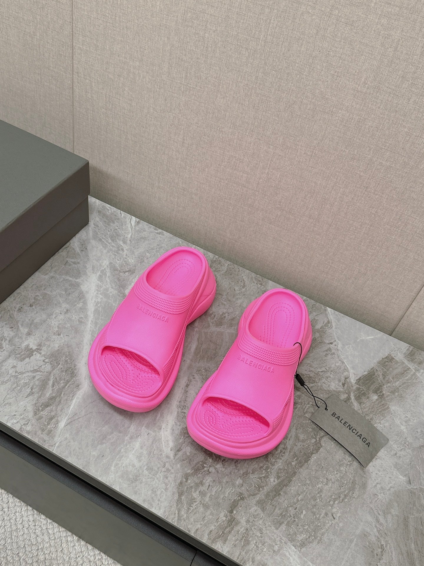 POOL CROCS SLIDE SANDAL IN BRIGHT PINK RUBBER
