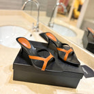 SL OPEN-TOES HIGH HEELS SLIPPER COPPER CALFSKIN