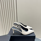 SL TRAPEZE HEEL SLINGBACK PUMP WHITE CALFSKIN
