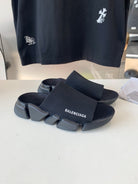 SPEED 2.0 SLIDE SANDAL IN BLACK RECYCLED KNIT AND BLACK SOLE