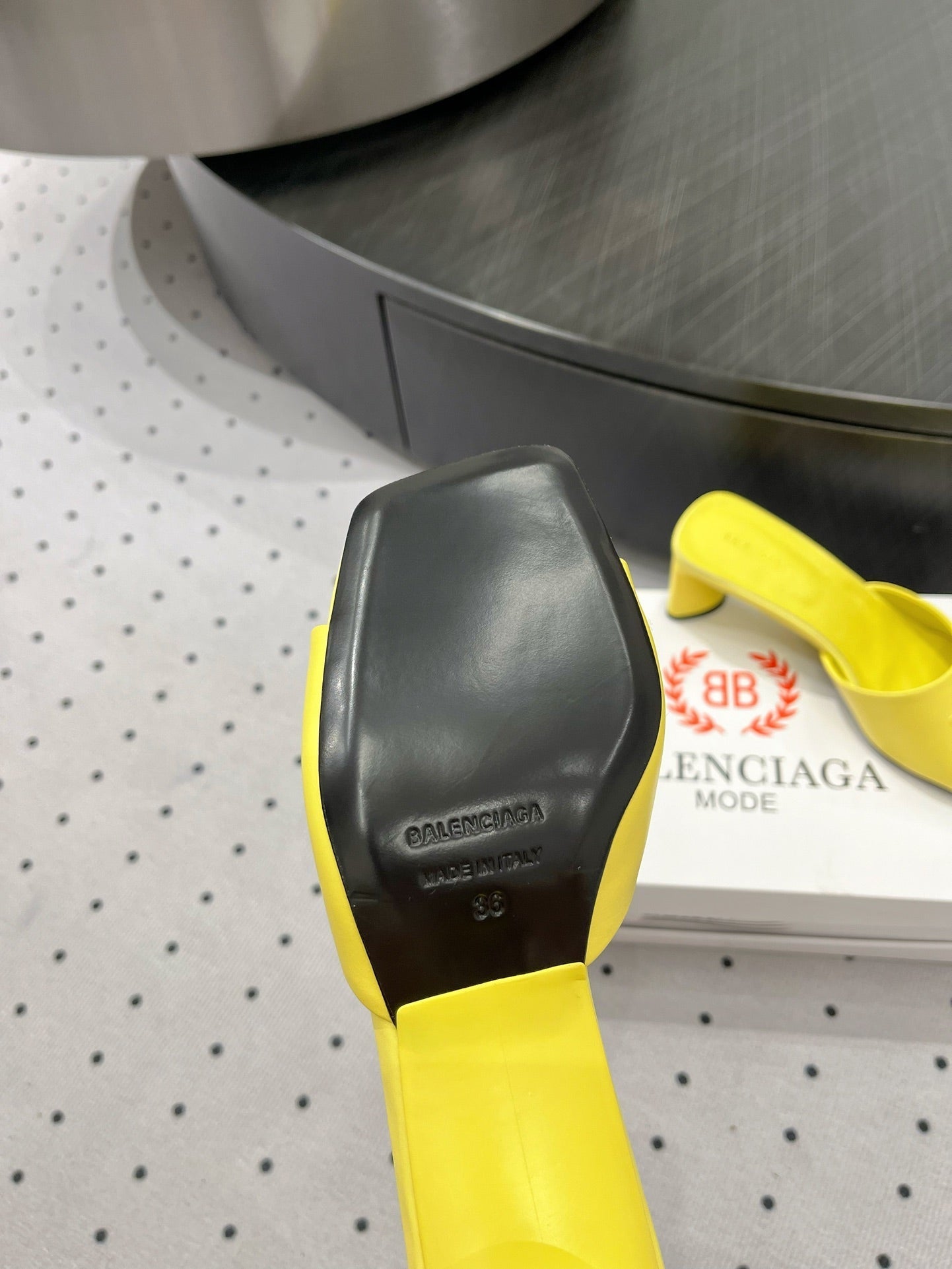 SQUARE-TOE MEDIUM HEEL MULES IN YELLOW CALFSKIN LOGO EMBOSSED