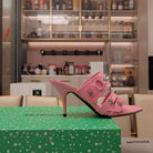 STRAPPY HIGH-HEELED SANDALS IN WEWAK PINK STUDDED WAX-OIL SHEEPSKIN