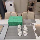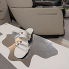 STRAPPY MEDIUM HEELED SANDALS IN WHITE STUDDED WAX-OIL SHEEPSKIN