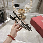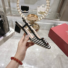 Viv 25 Sling Back Black Floral Cloth Leather 355489