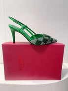 VT High Heeled Slingbacks Green Sheepskin 292818