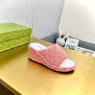 WEDGE SANDALS IN PINK MONOGRAM JACQUARD FABRIC