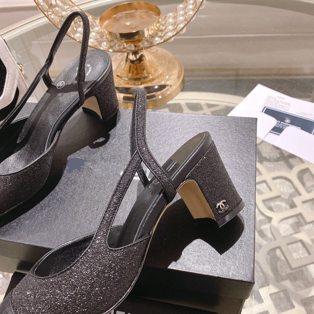 slingback 6.5 glitter black grosgrain