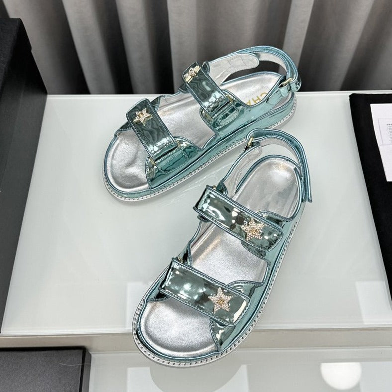 dad sandals grey patent lambskin
