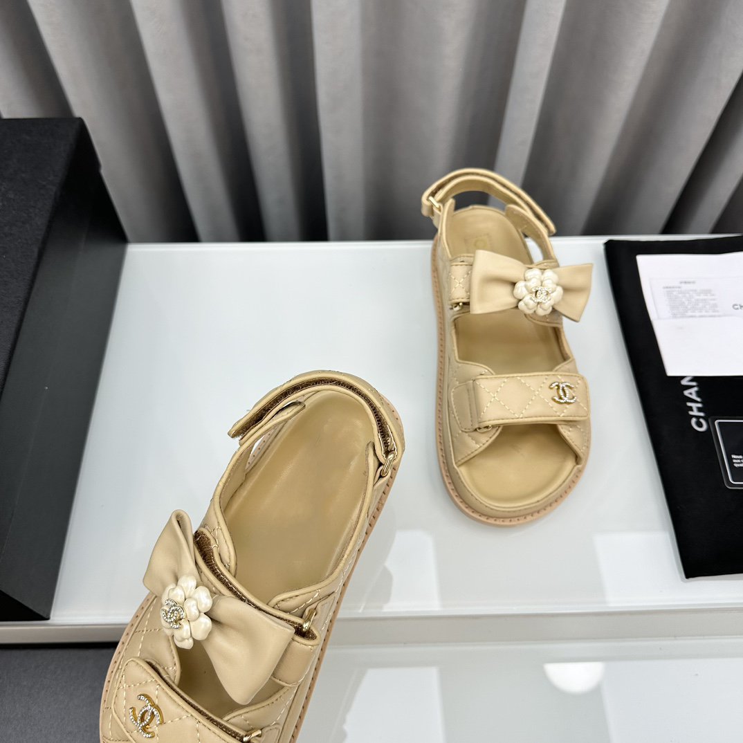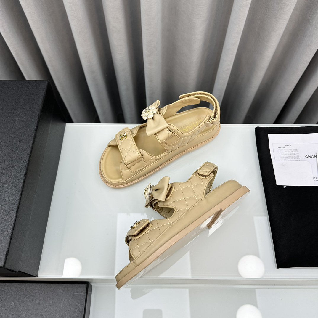 dad sandals beige bow tie lambskin
