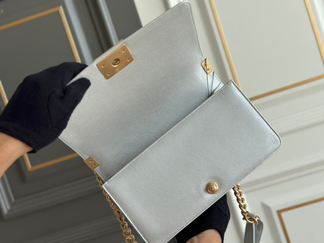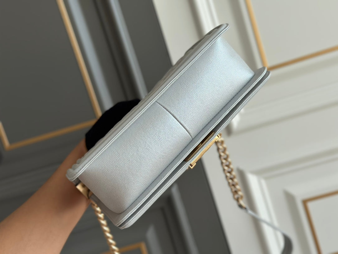 boy medium 25 grey quilted caviar aged gold hardware