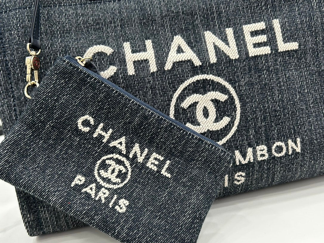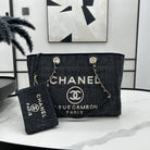 CC Deauville Tweed Bag 33x24x14.5cm Black Leather Gold Hardware 27